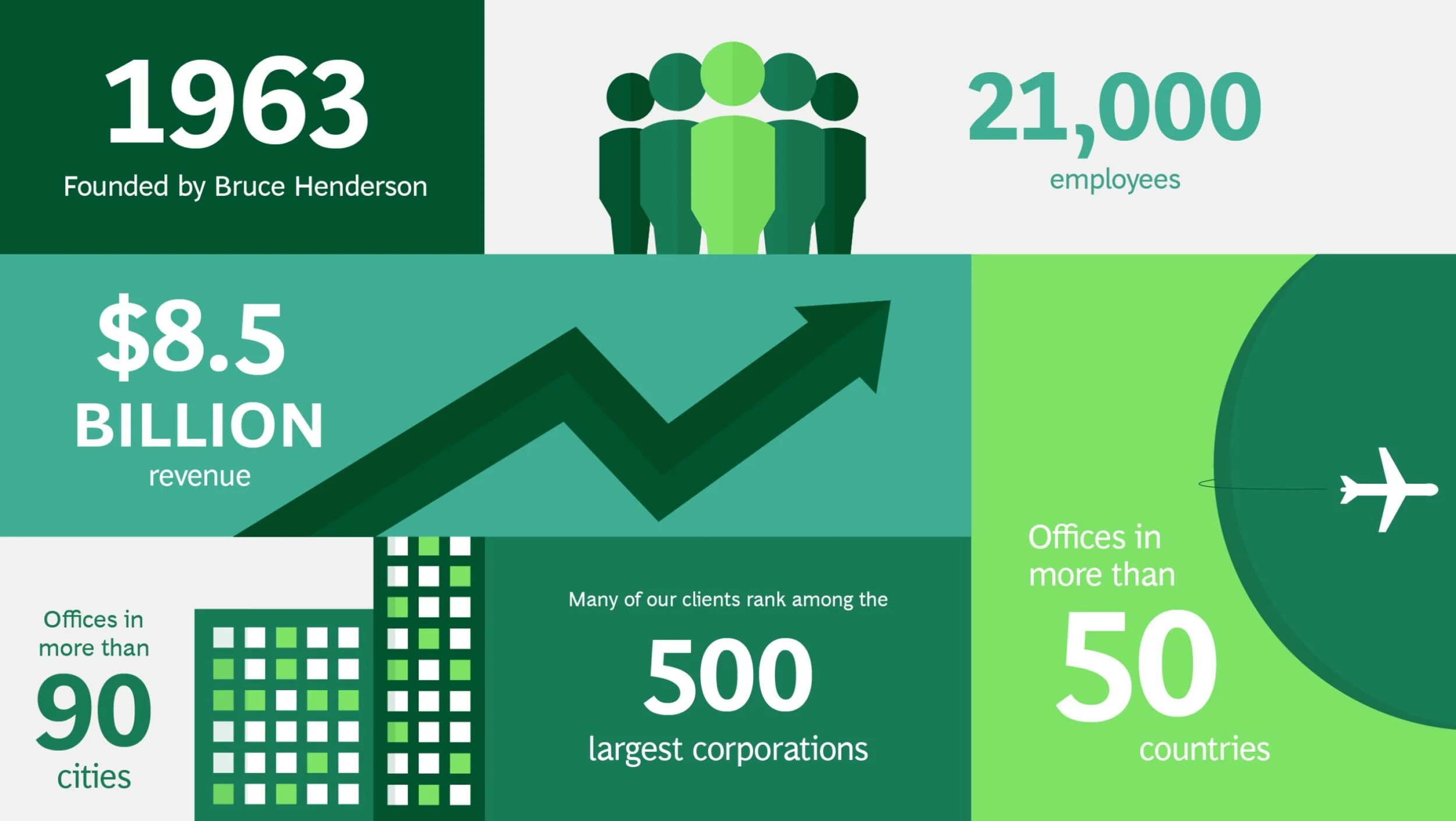 Boston Consulting Group partners with leaders in business and society to tackle their most important challenges and capture their greatest opportunities. BCG was the pioneer in business strategy when it was founded in 1963. Today, we help clients with total transformation—inspiring complex change, enabling organizations to grow, building competitive advantage, and driving bottom-line impact.